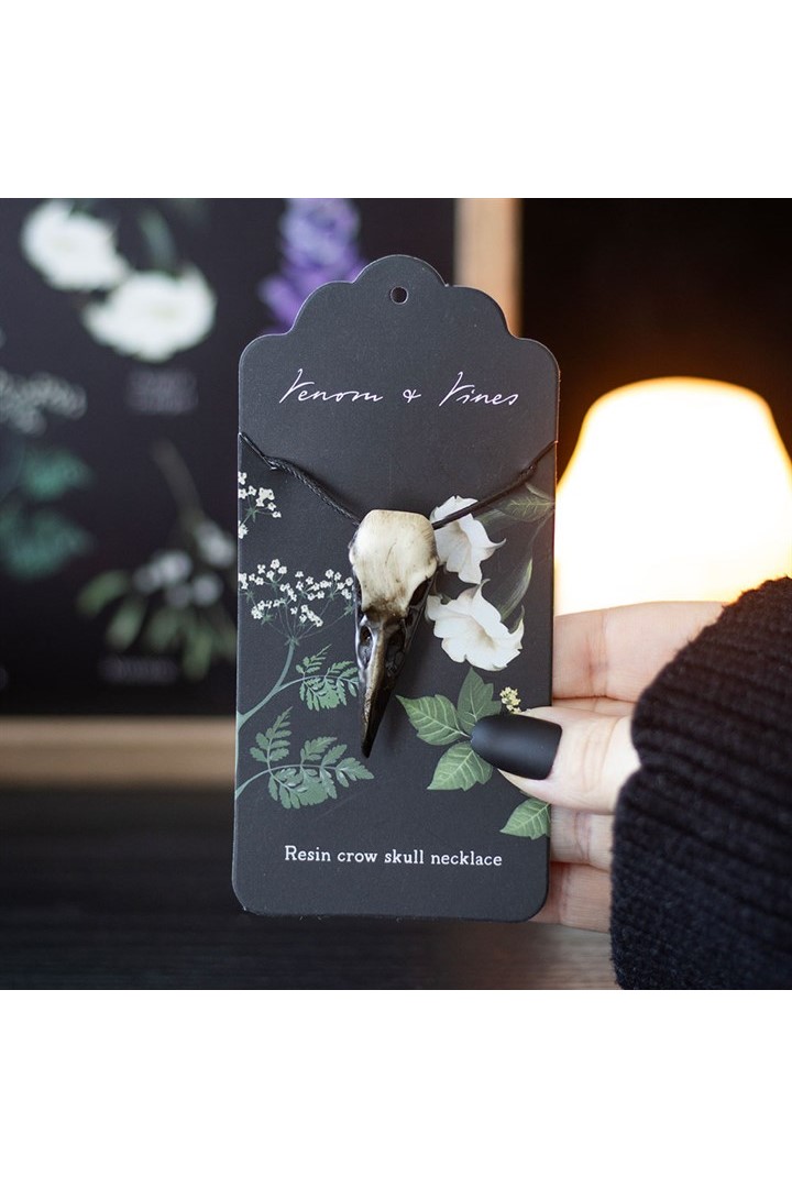 Die Resin Krähen Schädel Kette ist ein mystisches Accessoire im dunklen Natur- und Gothic-Stil.