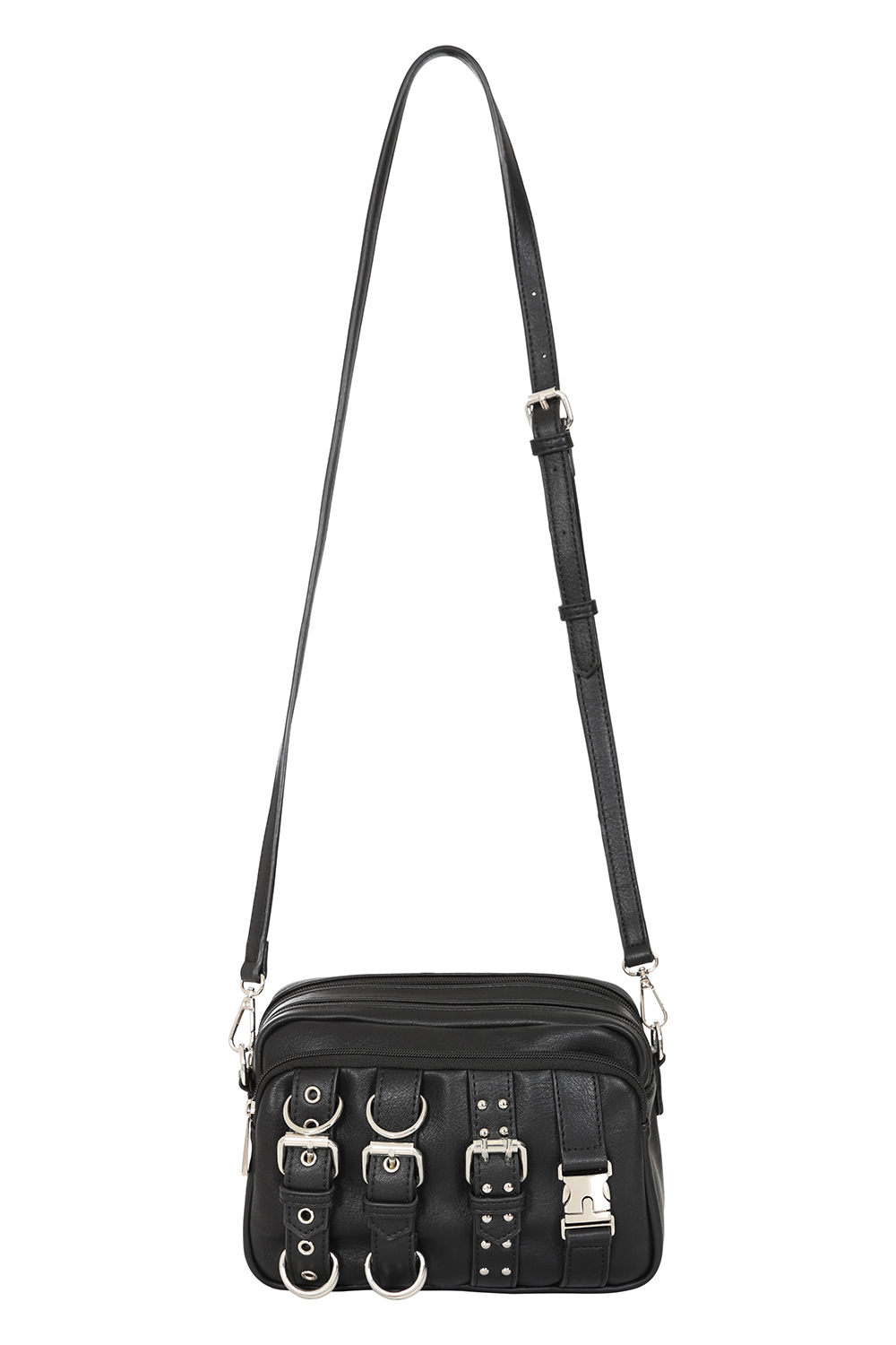Markante Schnallen, Ringe und Nieten setzen zusammen mit dem schwarzen Finish starke Akzente und verleihen dem Look eine charaktervolle Ausstrahlung.