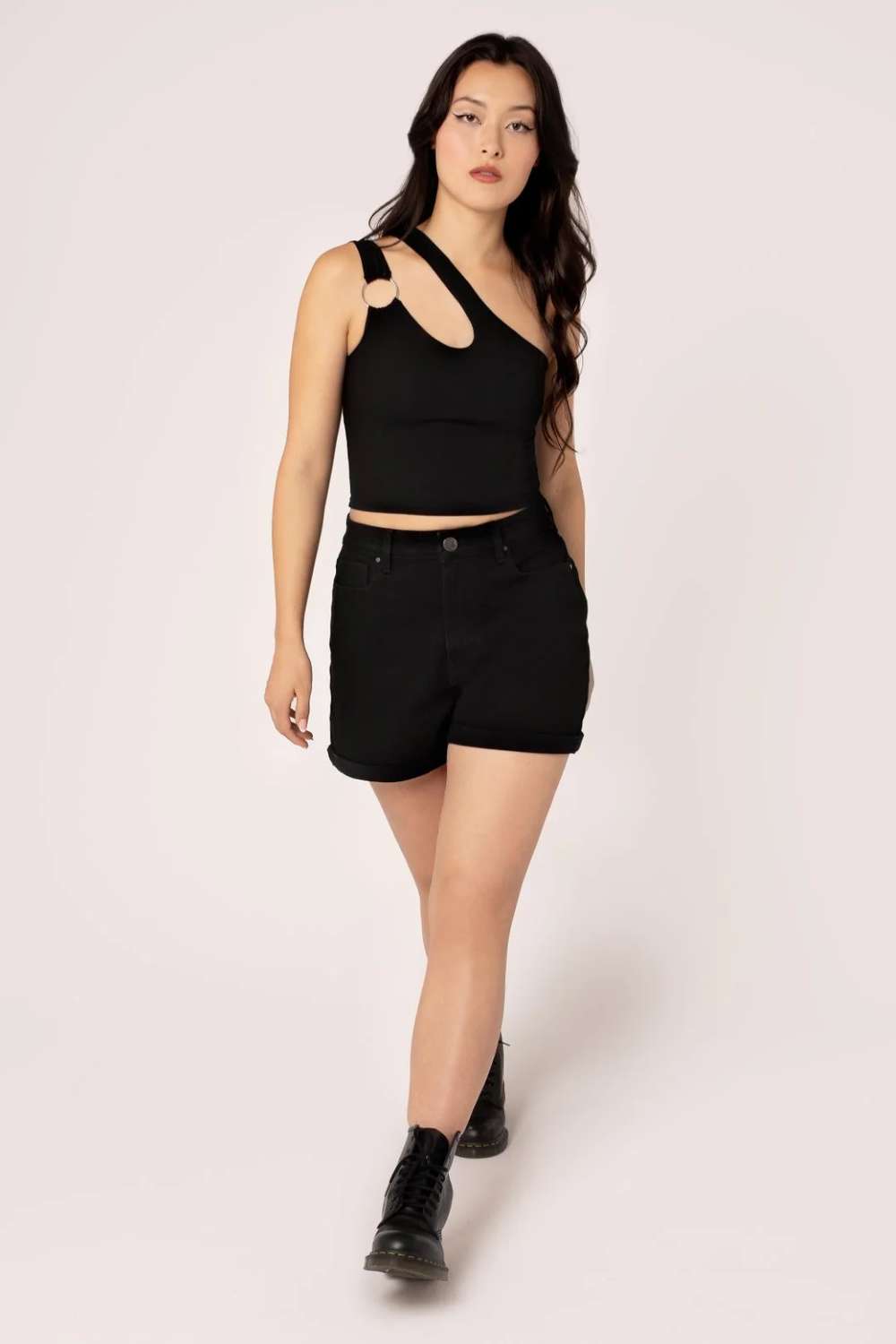 • Schwarze Denim-Shorts im Grunge-Stil