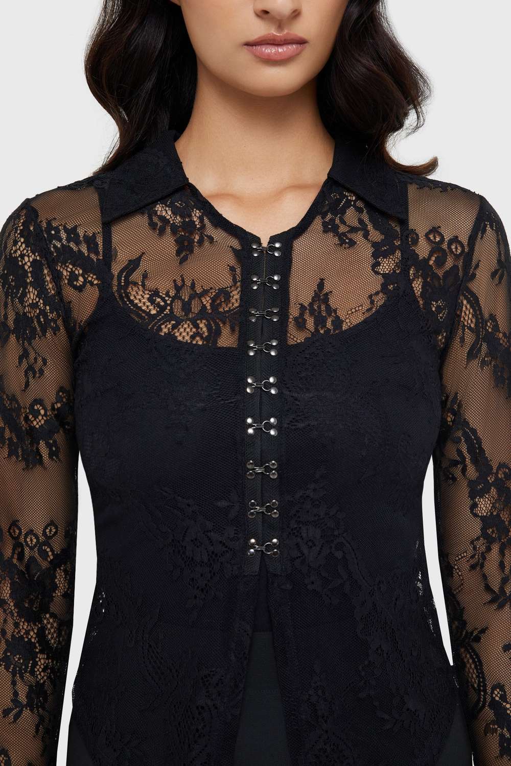 Ein korsett‑inspiriertes Haken‑und‑Ösen‑Verschlusssystem sorgt für ein edgy Detail.