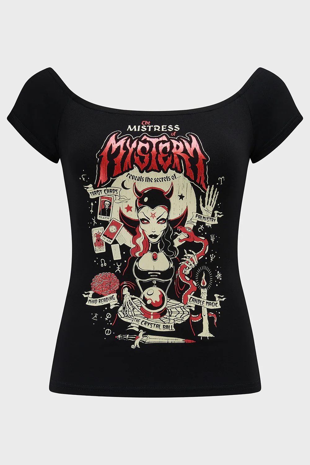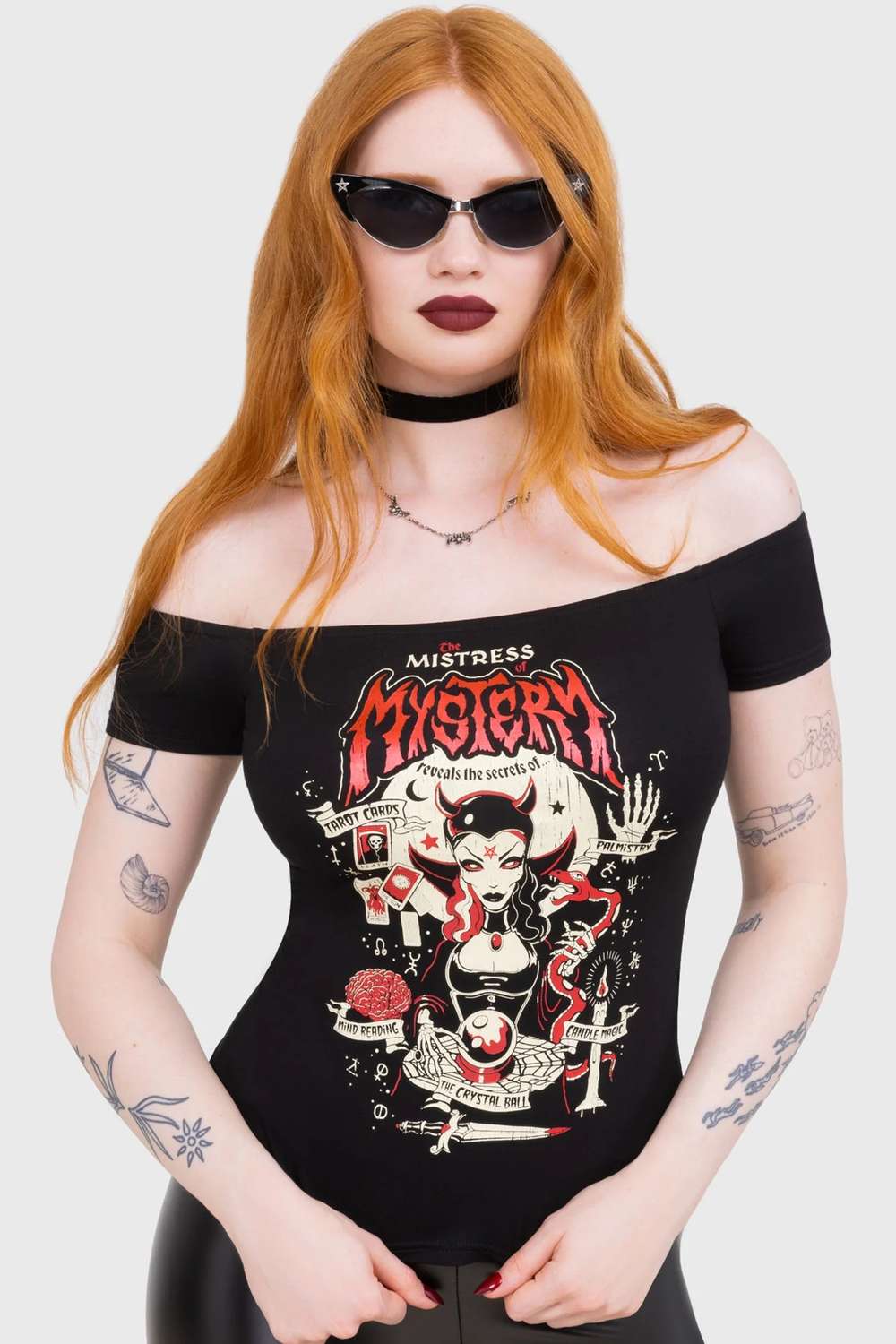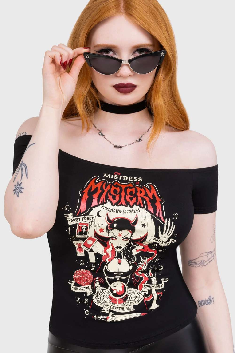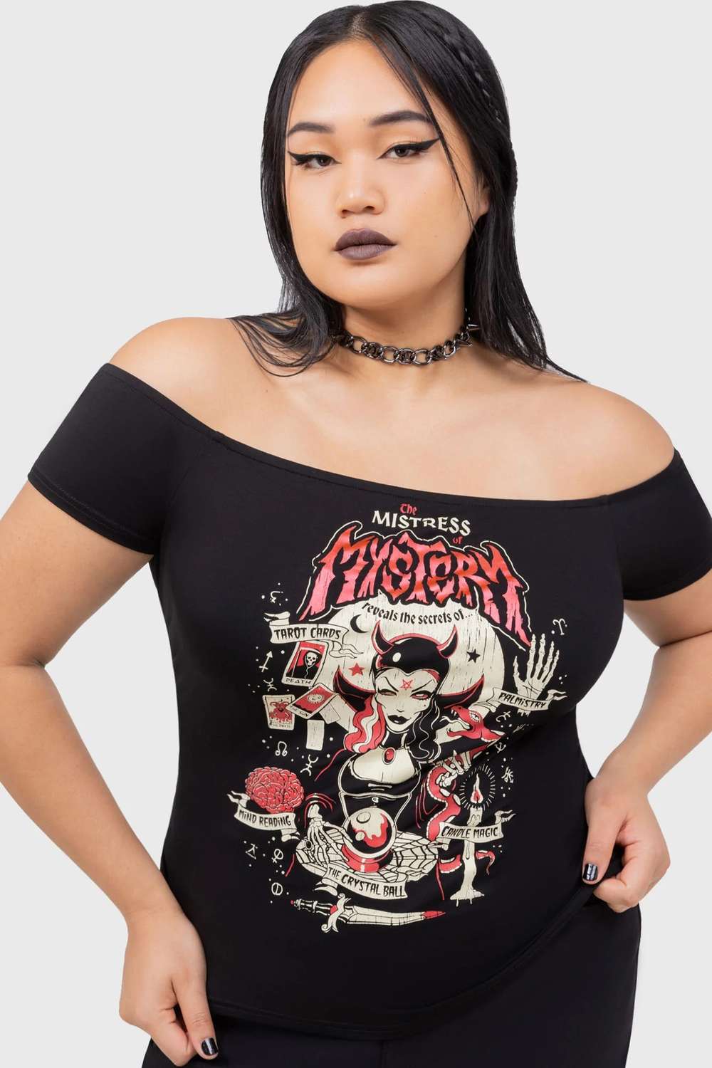 Das Mistress Mistery Bardot Top von Killstar verbindet feminine Eleganz mit dunklem Flair.