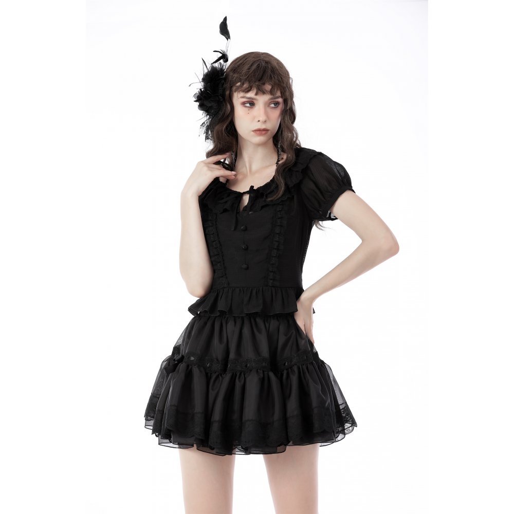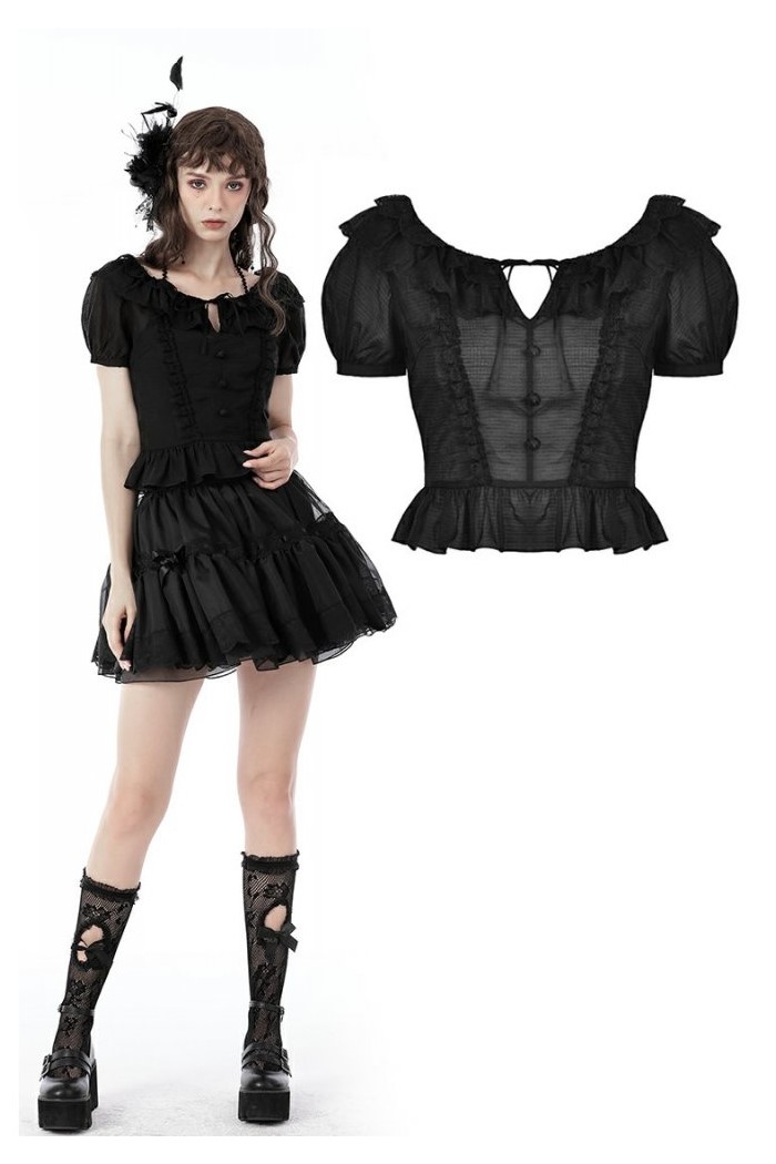 Das Dark In Love - Black Lolita Girl Frilly Top verkörpert den charmanten Lolita-Stil mit einem Hauch von verspielter Eleganz.