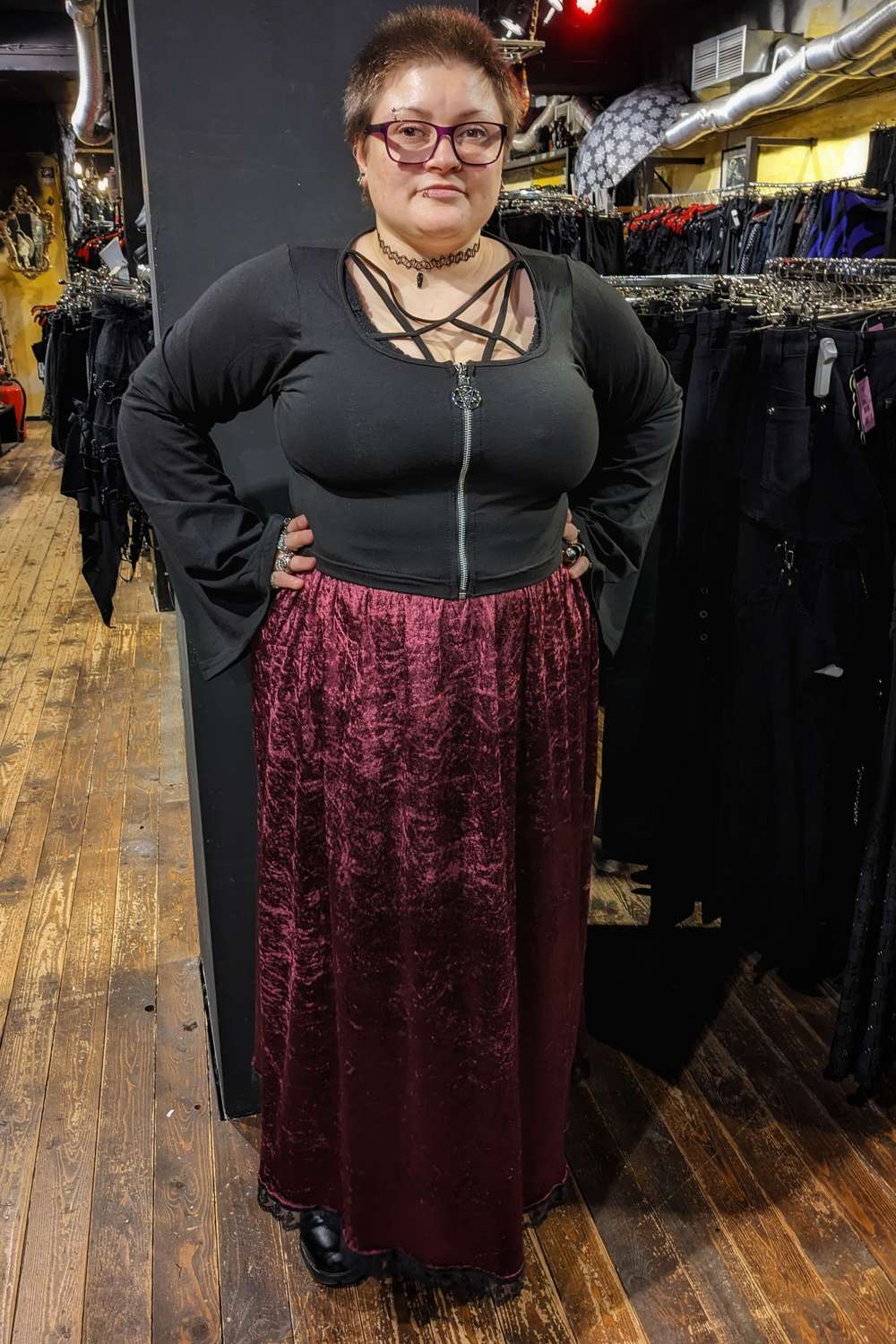 -langer Maxirock aus weichem Pannésamt