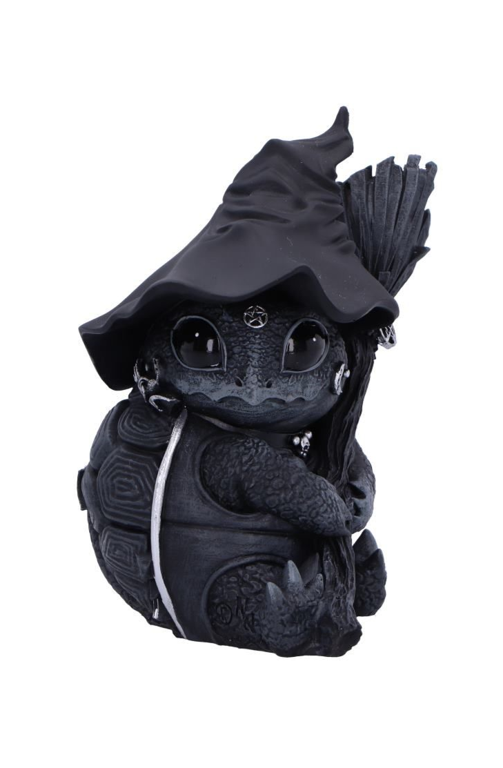 Die kleine schwarze Schildkröte ist  mit okkulten Symbolen wie Mondphasen, Totenkopfdetails und Pentagrammen verziert – perfekt für alle, die magische und ungewöhnliche Deko lieben.