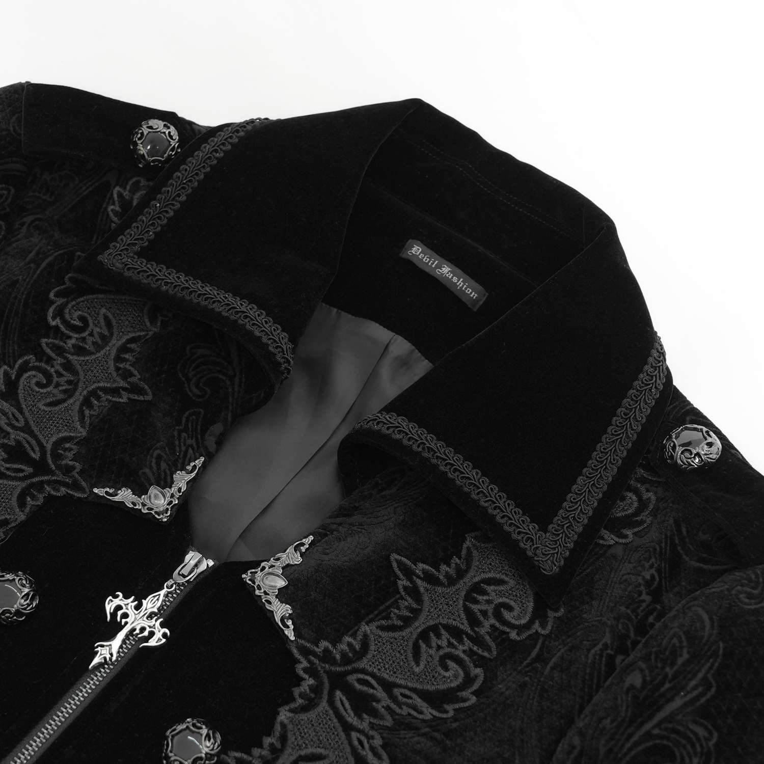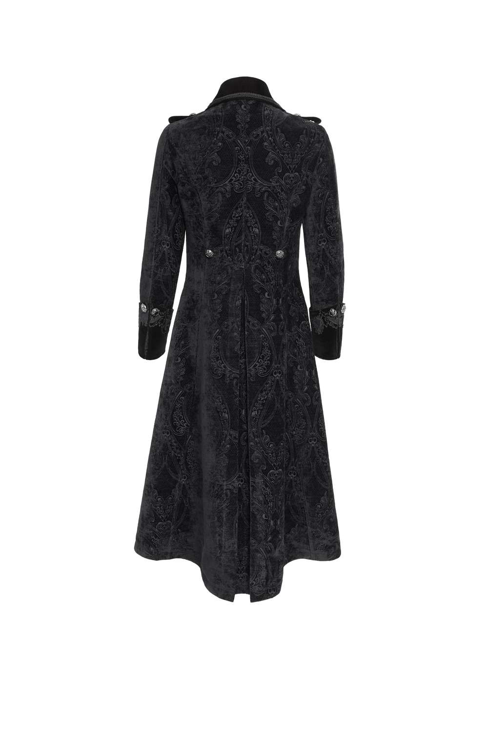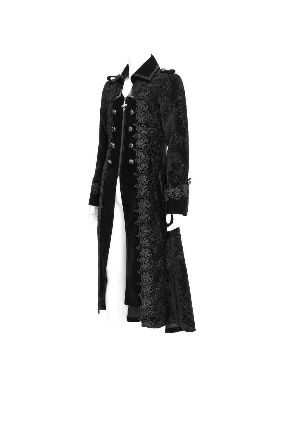 Dieser Gothic Mantel von Devil Fashion überzeugt durch ein auffälliges Paisley-Design im edlen Jacquardstoff.