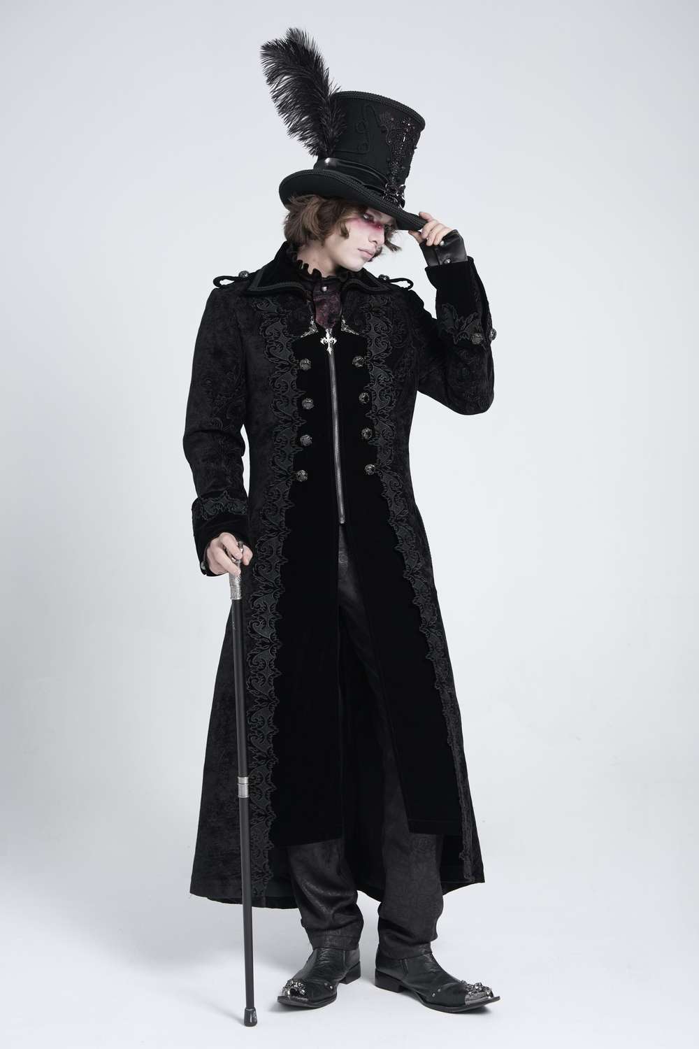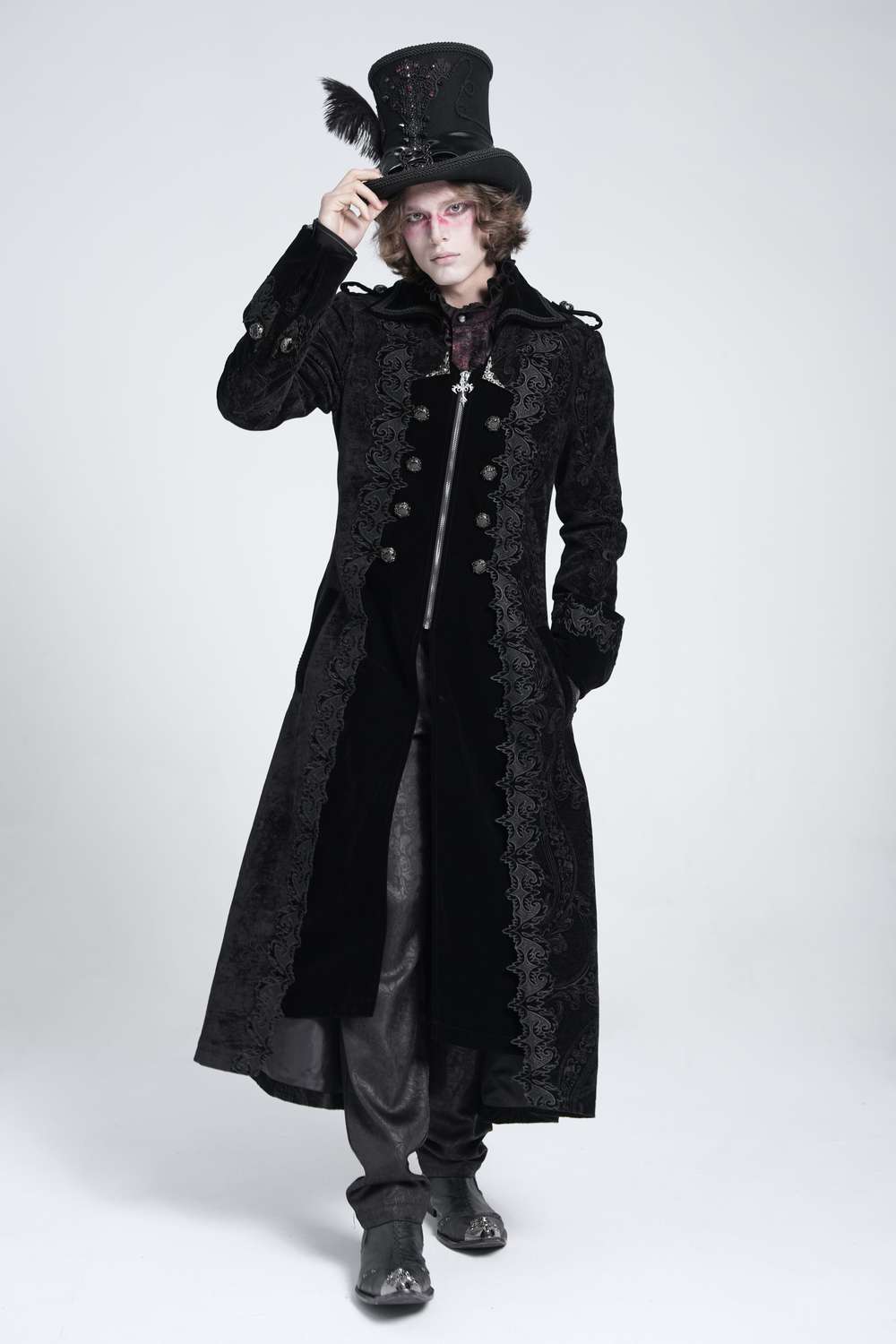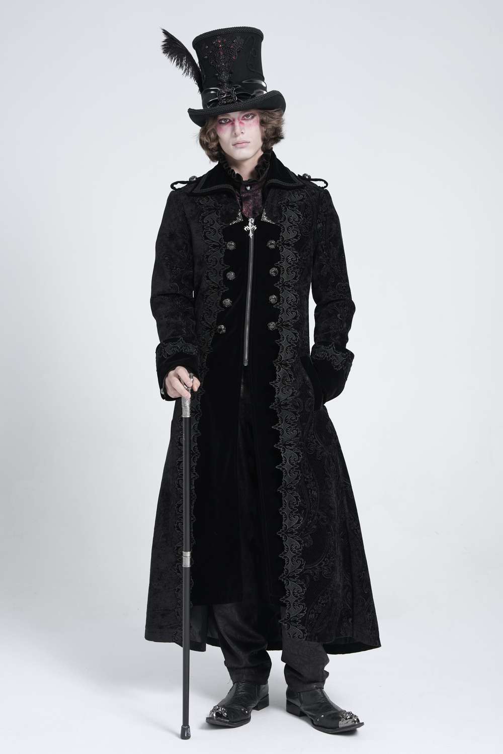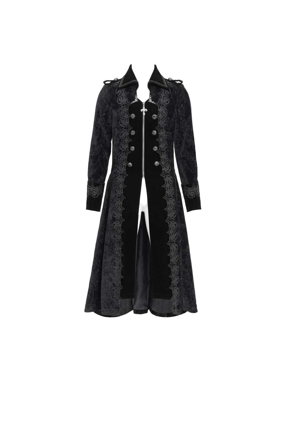 Dieser Gothic Mantel von Devil Fashion überzeugt durch ein auffälliges Paisley-Design im edlen Jacquardstoff.