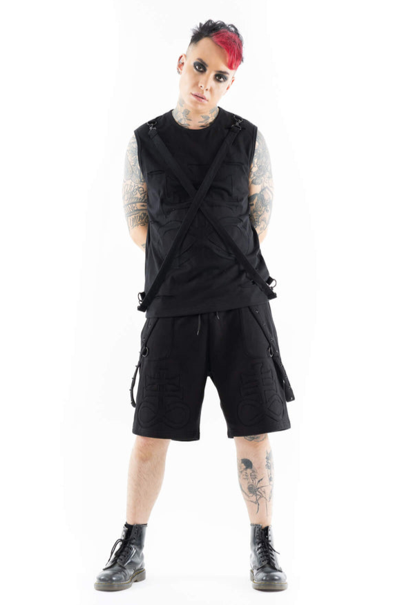 Hergestellt aus elastischer Baumwolle, verbindet es bequemen Sitz mit unverwechselbarem Gothic-Rock-Flair.