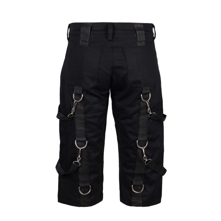 Diese schwarzen Denim-Shorts verbinden klassischen Look mit markanten, alternativen Details.